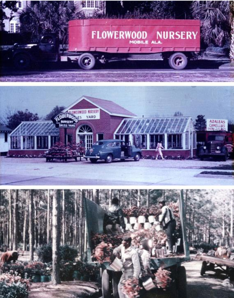 Flowerwood’s story began with Harry Smith, a Mobile Railroad attorney who took up camellia breeding as a hobby at the advice of his doctor. What started as a relaxing diversion on the banks of Dog River evolved into a family business that would later be expanded by his son, Greg Smith Sr., after college and military service.